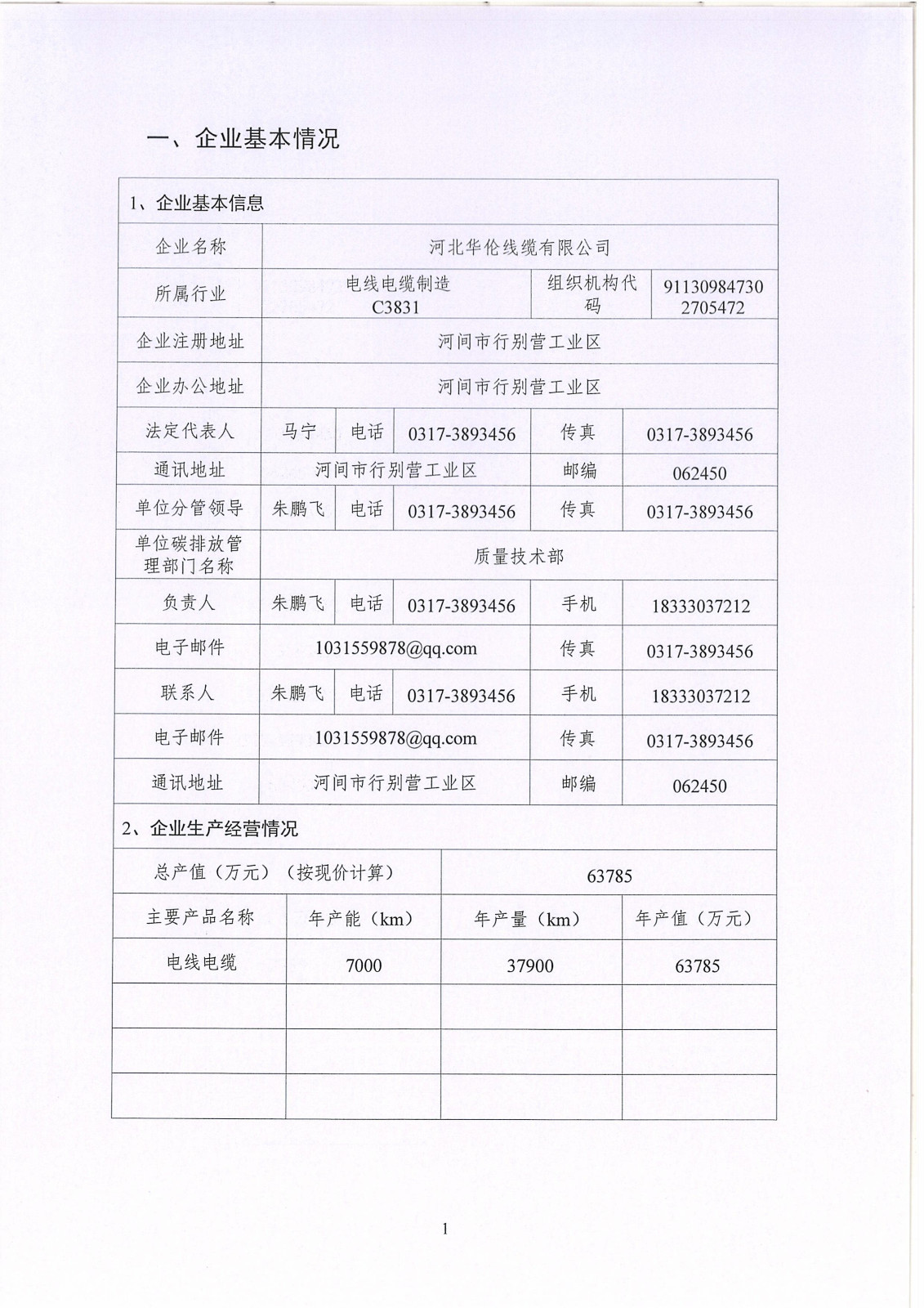 河北華倫線纜有限公司2024年溫室氣體排放報(bào)告及改善計(jì)劃