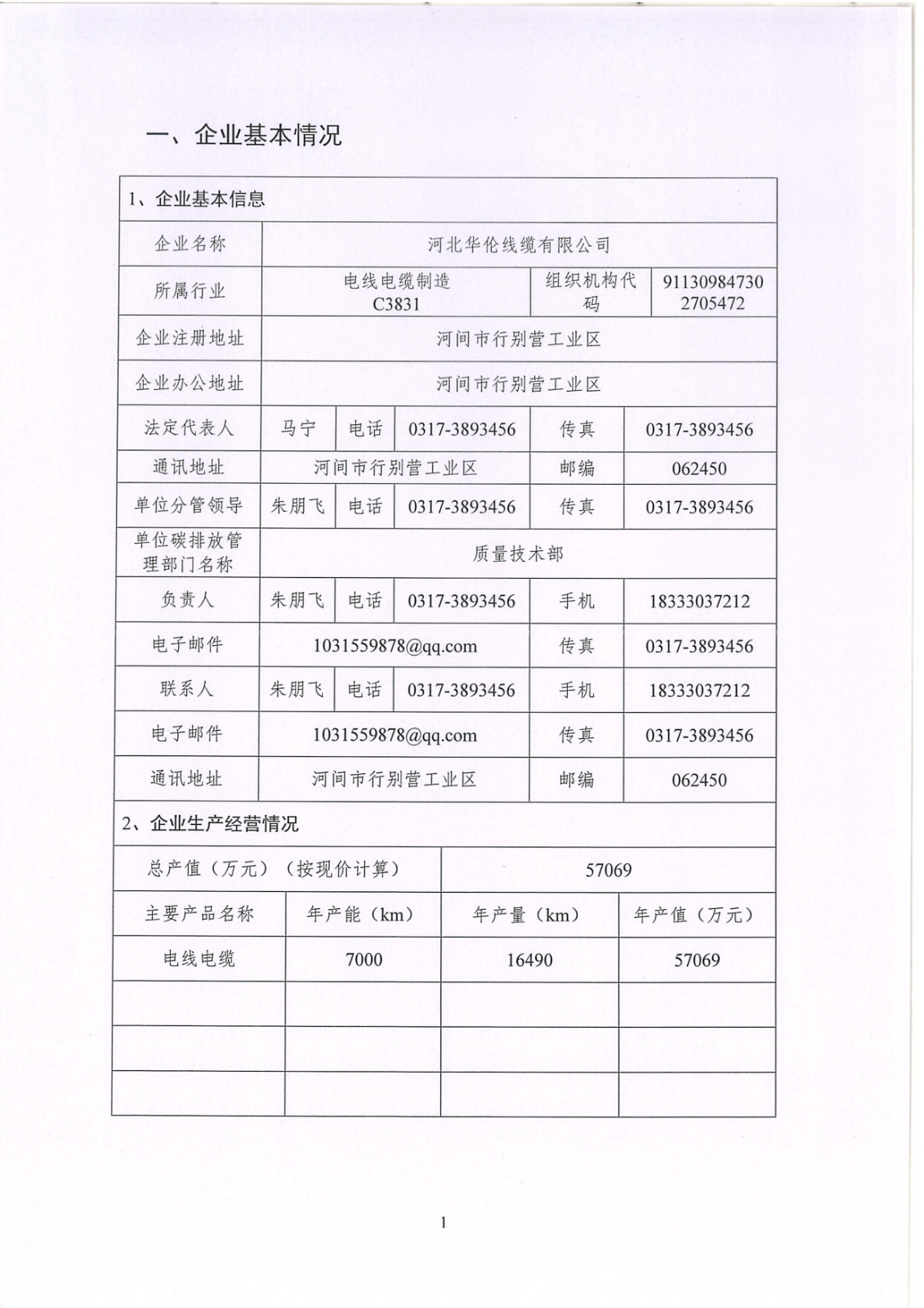 河北華倫線纜有限公司2022年溫室氣體排放報告及改善計劃